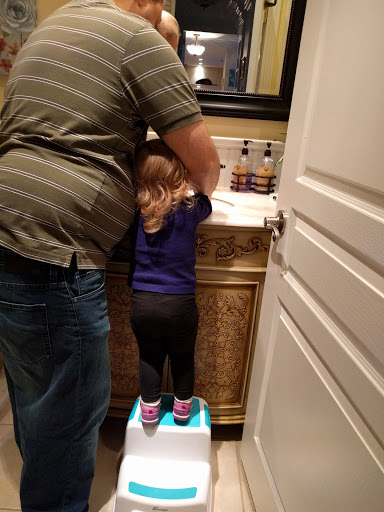 - Loves: dressing up her Elmo doll, going to the park (running, sliding and swinging FAST), blowing bubbles, drawing with sidewalk chalk, pressing the buttons in the elevators, using my key to open our front door, wearing Mommy's/Daddy's shoes, negotiating to watch Sesame Street ("one Elmo!" with her little index finger pointing up), choosing her clothes and trying to dress herself, watching big kids play and run, sitting on the kitchen floor (especially to eat snacks), standing on her stool to wash her hands in the sink, generally being silly, wearing her sunglasses on her head, sensory play and art projects, and sitting on her Elmo potty.